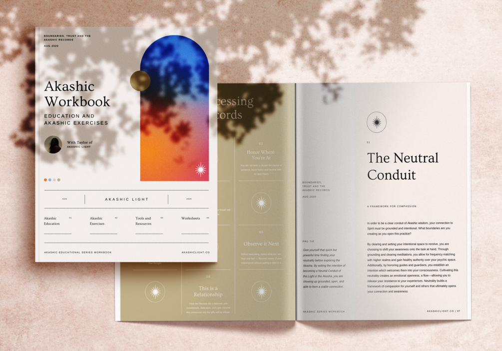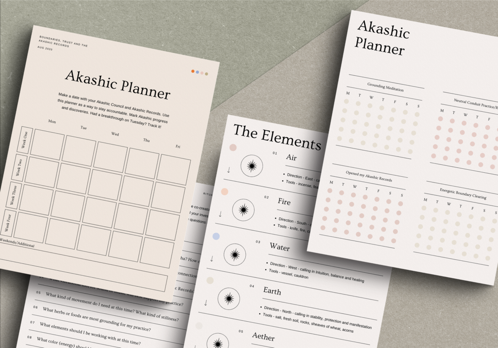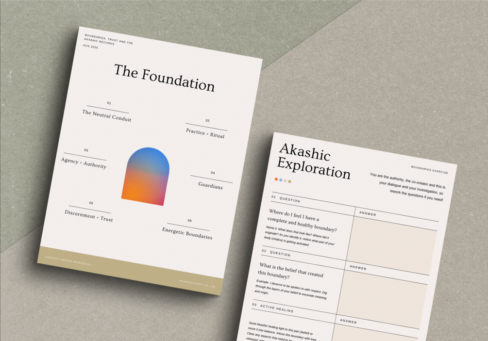 THIS 40 PAGE WORKBOOK explores foundational pillars covering discernment, authority, practice and ritual, Akashic guardians, and energetic boundaries while giving you Akashic exercises and worksheets. By having a closer relationship to your boundaries you will build a stronger connection and ultimately develop a long-lasting exchange with Trust.